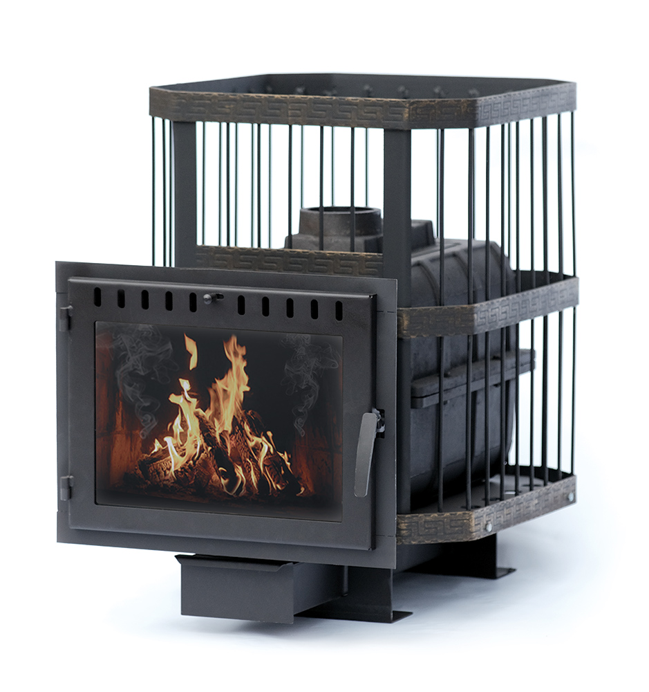 Печь банная НМК Сибирь — 18 чугунная дверка сетка пруток панорама